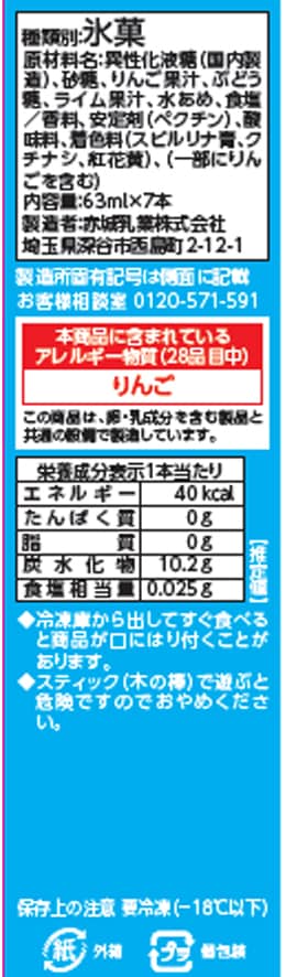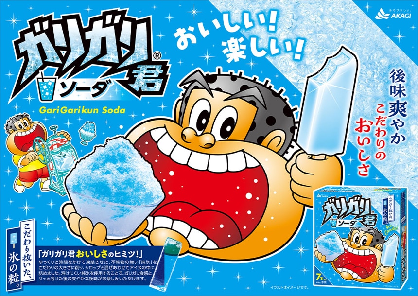 ソーダアイスの中に、ガリガリとした食感が特徴のソーダカキ氷を入れたアイスキャンディーです。ゆっくりと時間をかけて凍結させた、不純物の無い「純氷」をこだわりの大きさに削り、シロップと混ぜあわせてアイスの中に詰めました。溶けにくい純氷を使用することで、ガリガリ食感とサッと溶けた後の爽やかな後味がお楽しみいただけます。