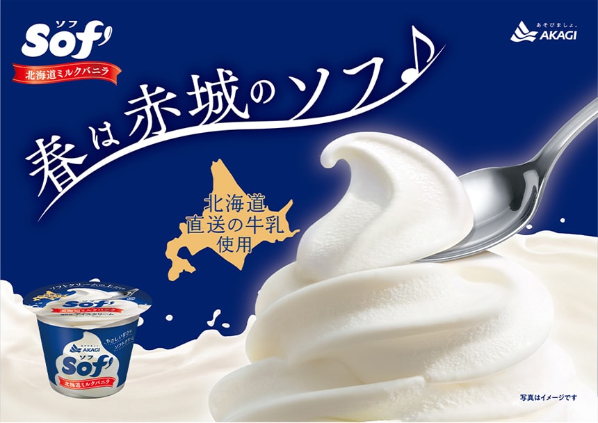 北海道産生クリーム、北海道産発酵バターを中心に、乳製品は北海道産のみを使用。原料の選定からこだわり、乳製品は北海道産のみを使用した、「ソフトクリームの上だけ」。無脂乳固形分を23年春発売品より0.9%UPさせることにより、ミルクのコクが豊かになっています。