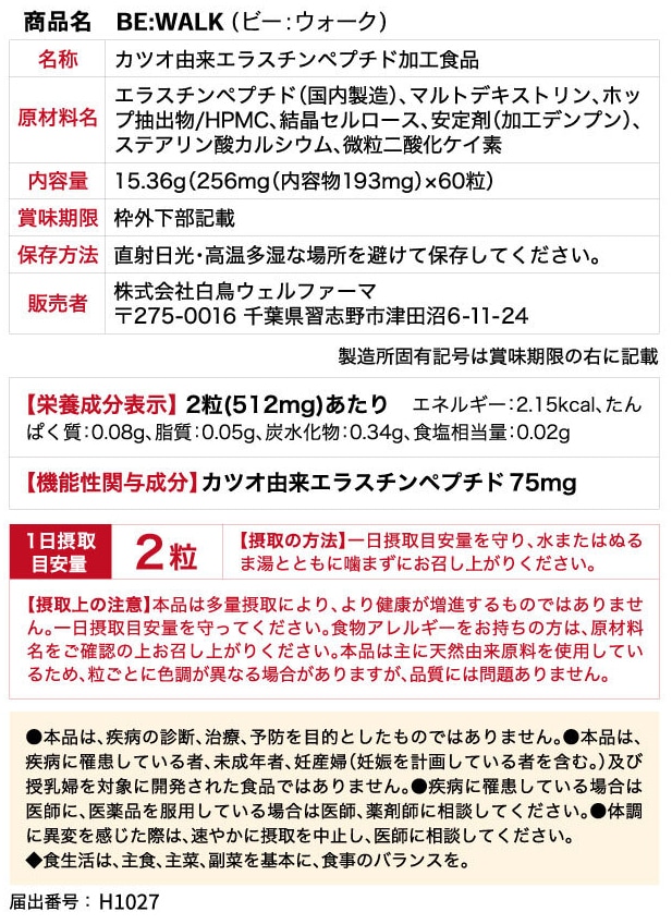 【届出表示】本品にはカツオ由来エラスチンペプチドが含まれています。