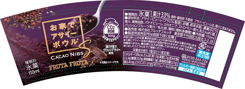 [30個]フルッタフルッタ お家でアサイーボウルSカカオニブ 110ml | アサイーが濃い黄金レシピのなめらかアイスにカカオニブを練り込んだ一品。