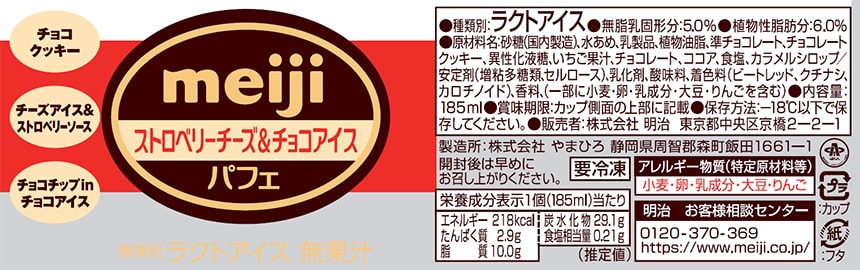 [40個]明治 ストロベリーチーズ&チョコアイスパフェ 185ml | チョコの味わいに、ストロベリーチーズアイスやクッキーのボリュームたっぷりのパフェアイス