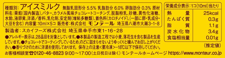 ※アイスクリーム類は、-18度以下での冷凍保存の状態では、品質の劣化が極めて小さい食品ということで、賞味期限の設定がされておりません。