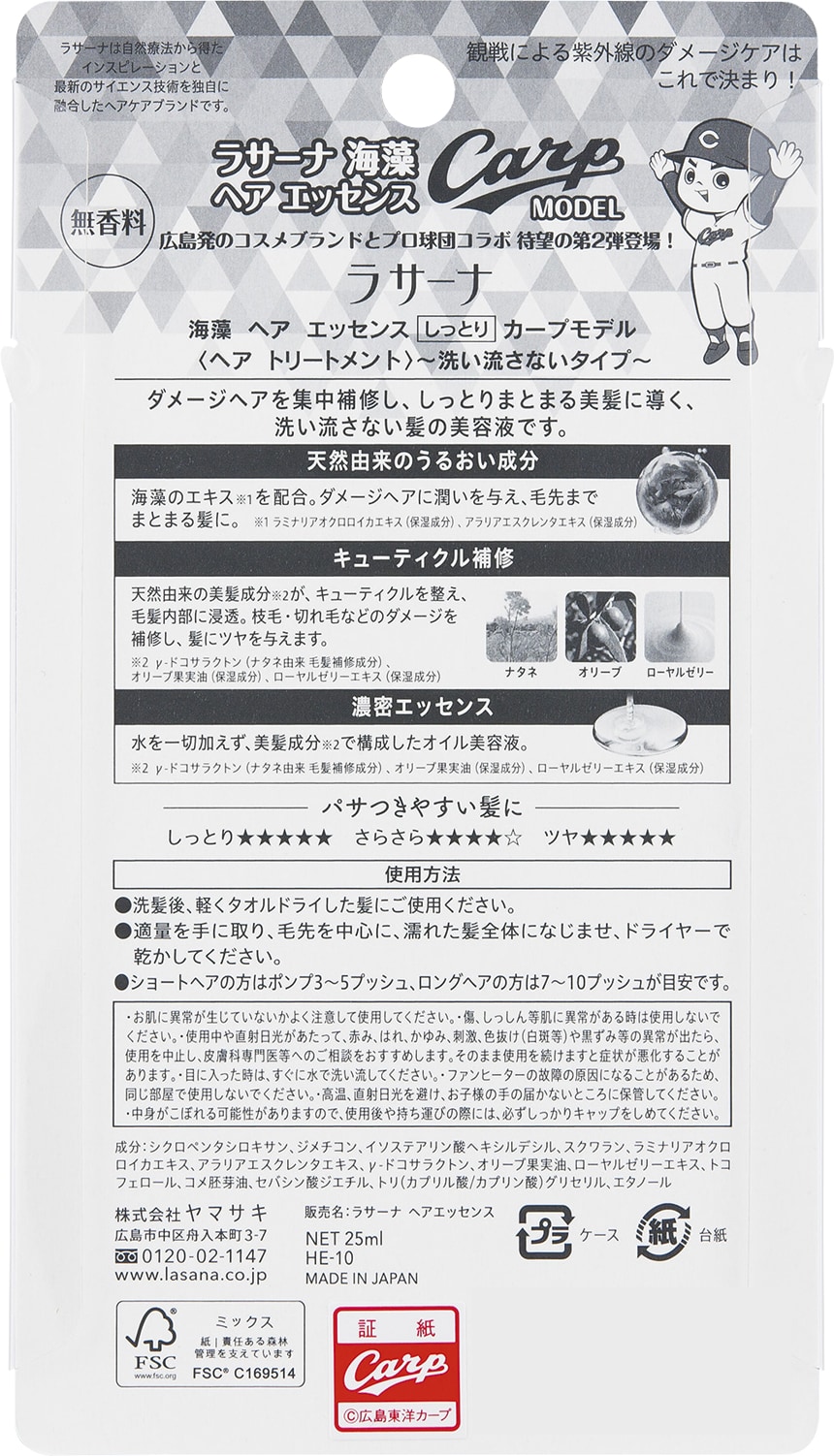 [計12本]ヤマサキ ラサーナ 海藻ヘアエッセンスS カープ限定12本セット | 毛先までダメージを集中補修。つややかに輝く美髪へ。