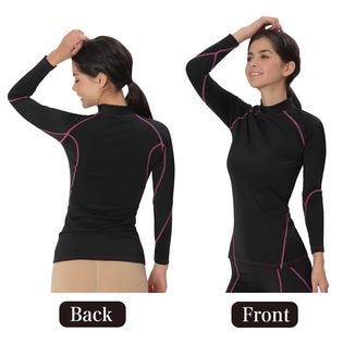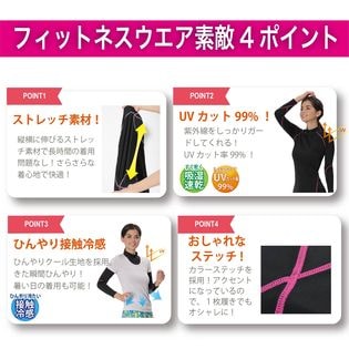 - 【L-LL/ブラック(ピンクライン)】UVカットフィットネスウェア