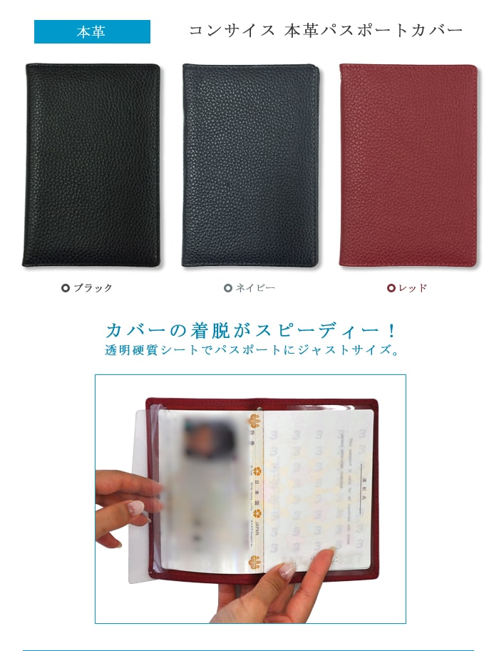 手になじむ牛革を使用したパスポートカバー、ジャストサイズで着脱も楽々!