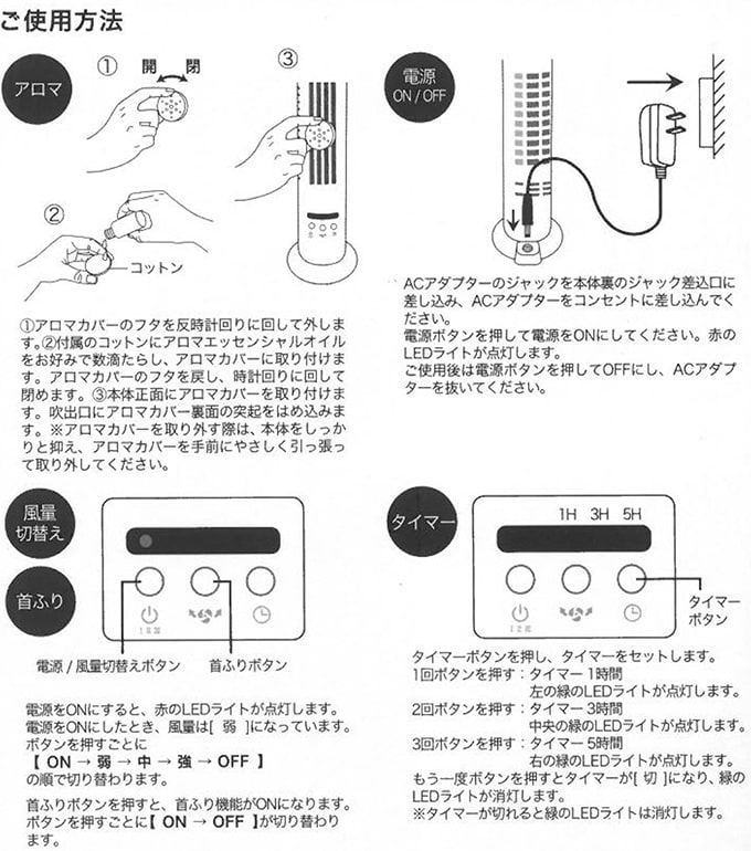 ・付属品:ACアダプター、コットン5枚、アロマカバー