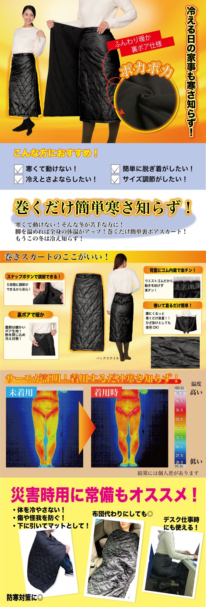 裏ボアで暖か!腰にくるっと巻いて装着!ひざ掛けとしても使用OK!