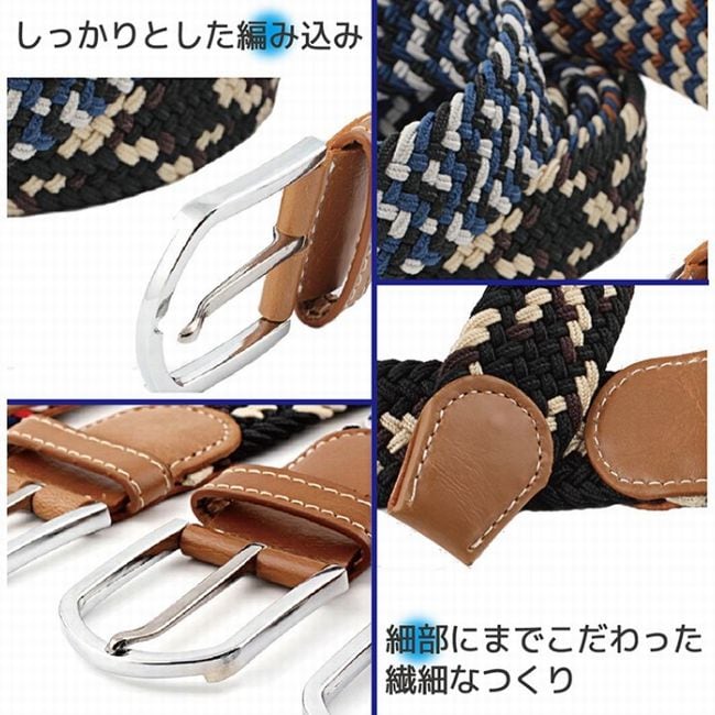 【ブラック×ホワイト】ゴムメッシュベルト 無段階 伸びる ...781円 -