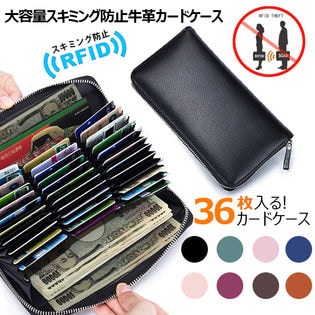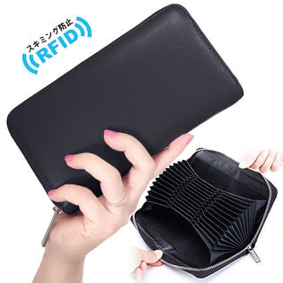 - 大容量スキミング防止牛革カードケース(ブラック)
