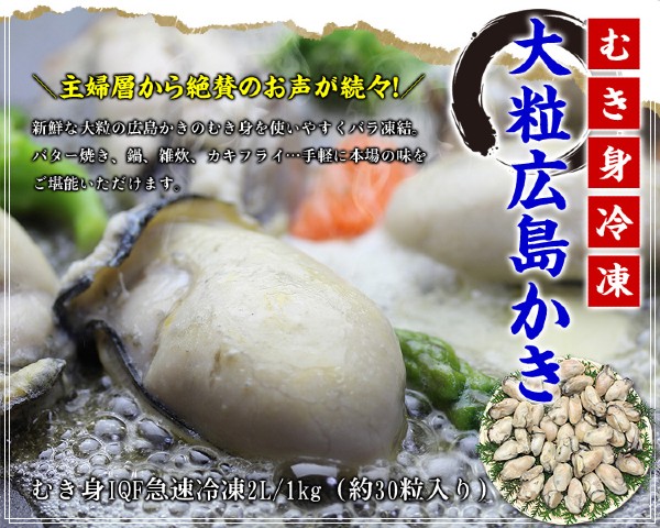 - 【1kg(解凍後850g/30粒前後)】特大2Lサイズ ジャンボ広島かき