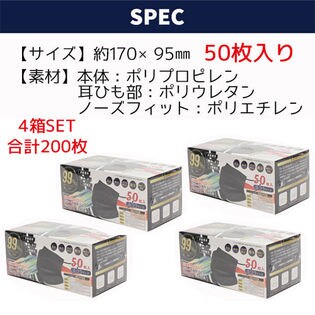 - 【ブラック200枚】不織布マスク 普通サイズ カラー 99%カットフィルター 大人用