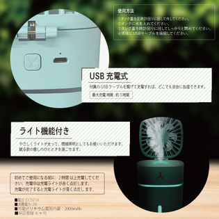 付属のUSBケーブルを繋げて充電すれば、どこでも自由に加湿できます。