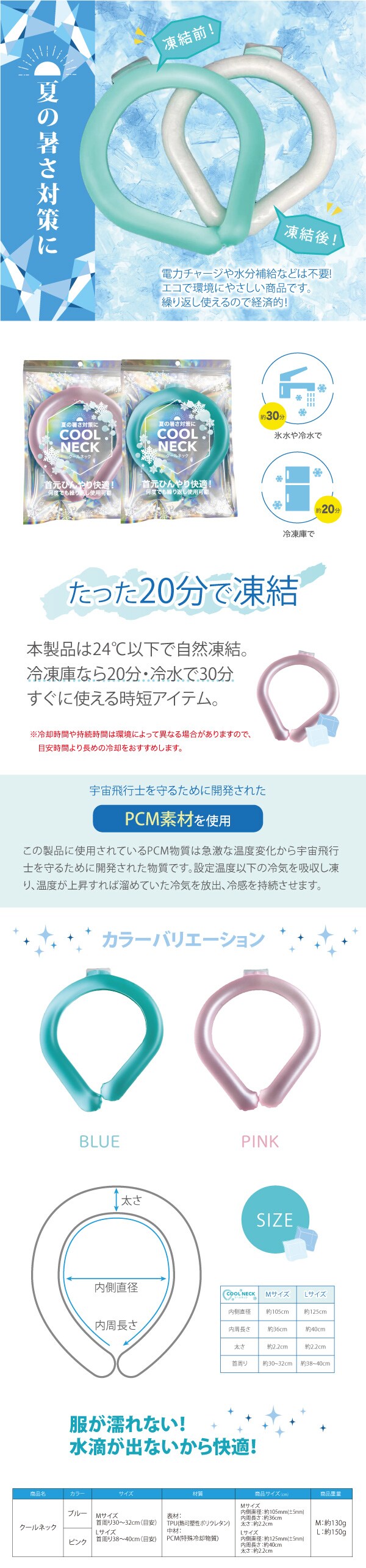 冷たすぎない温度で首元に着けたままでも、嫌な感じがしない。水滴などが出ないのも襟が濡れなくていい。