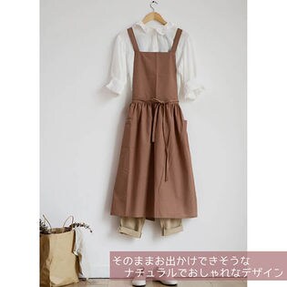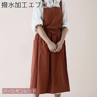 - 【パーシモンレッド】撥水加工 エプロン ロング かわいい おしゃれ レディース 無地 ドレス 北欧