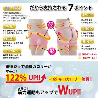 楽圧ハイウェスト、気になるお腹全体を引き締め、ほっそりウエストを演出します。内側のパワーネットは骨盤引き締めとヒップアップに効果があり、毎日履くだけでほっそり綺麗な下半身へと導きます。肌触りも快適で、引き締まっているのに苦しさを感じないので長時間にご使用も安心です。