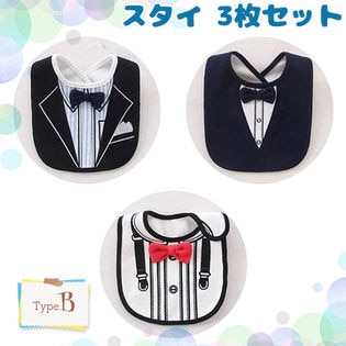 おしゃれなスタイ3枚セット。フォーマルな場面でも似合うかけるだけでオシャレに。 スナップ着脱簡単。蝶ネクタイやブラウスのようなデザインで式典や結婚式などのセレモニーにも。 乾きが早いので毎日使うのに便利。洗い替えにも。