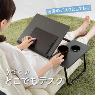 Point,02 落下防止のストッパー付き。天板を傾けた状態でPCやタブレット、雑誌を置いても落下しません