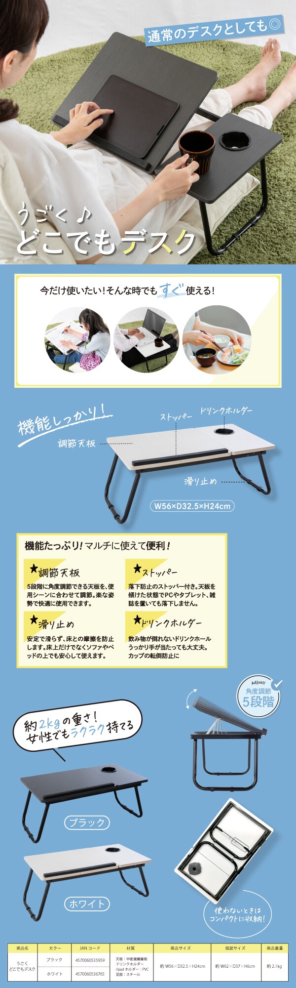 折り畳み式なので使わないときはコンパクトに収納できます!滑り止めがあるた、安定で滑らず、床との摩擦を防止します。床上だけでなくソファーやベッドの上でも安心して使えます。