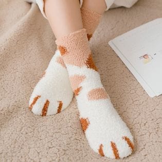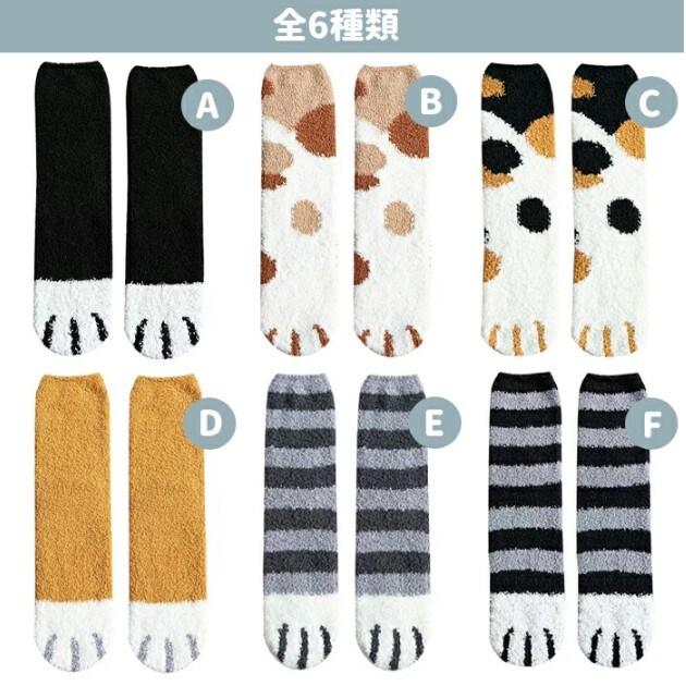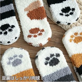 - 【B】もこもこ ルームソックス 猫 ネコソックス かわいい 肉球 ねこ あったか 靴下 防寒
