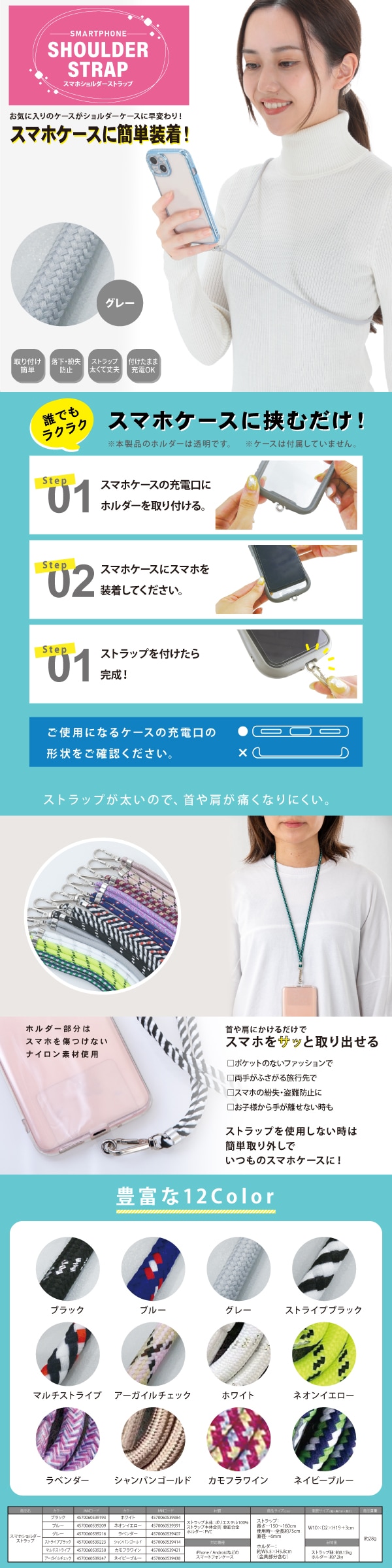 お気に入りのスマホケースに装着できる、ショルダーストラップ!