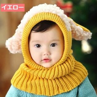 - 【イエロー】帽子 ニット帽 ベビー ネックウォーマー 子ども 防寒 キッズ ベビー帽子 秋冬
