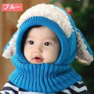 - 【ブルー】帽子 ニット帽 ベビー ネックウォーマー 子ども 防寒 キッズ ベビー帽子 秋冬