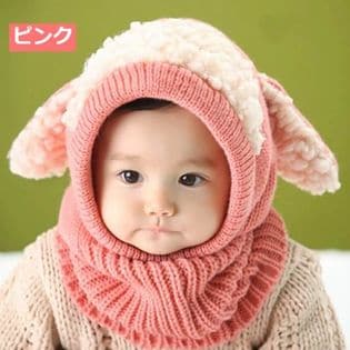 - 【ピンク】帽子 ニット帽 ベビー ネックウォーマー 子ども 防寒 キッズ ベビー帽子 秋冬