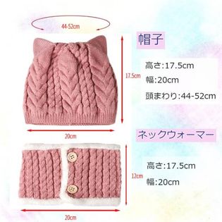 - 【ピンク】猫耳 帽子 ニット帽 スヌード セット ベビー ネックウォーマー 子ども 防寒