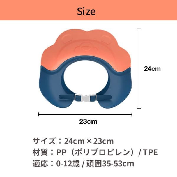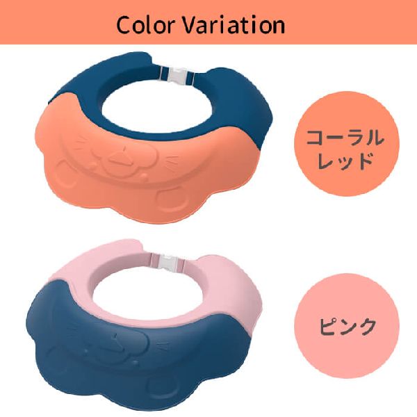 【コーラルレッド 】シャンプーハット ベビー 子供 キッズ シャワーキャップ 赤ちゃん イヤーガード | サイズ調節 滑り止め シャンプーグッズ バスグッズ バスタイム 子供用 あかちゃん こども