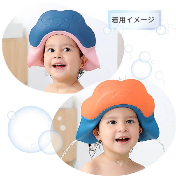 - 【コーラルレッド 】シャンプーハット ベビー 子供 キッズ シャワーキャップ 赤ちゃん イヤーガード