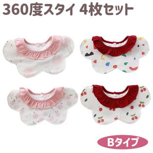 - 【Bタイプ】スタイ 4枚セット 防水 360度 フリル ベビー ビブ 男の子 女の子 よだれかけ