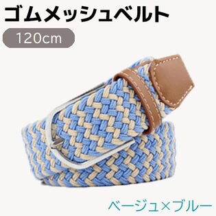 - 【ベージュ×ブルー】ゴムメッシュベルト 120cm 大きい メンズ レディース ベルト おしゃれ