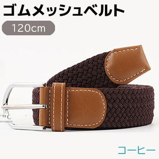 - 【コーヒー】ゴムメッシュベルト 120cm 大きい メンズ レディース ベルト おしゃれ