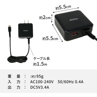 ■高出力3.4AのUSBポート付Type-Cケーブル一体ACアダプター