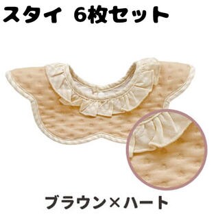 - 【ブラウン×ハート】スタイ 6枚セット 防水 360度 フリル おしゃれ ビブ 男の子 女の子