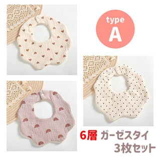 - 【Aタイプ3枚セット】6層 ガーゼ スタイ よだれかけ かわいい おしゃれ ビブ シンプル ベビー
