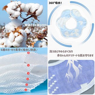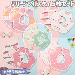 - 【女の子用5枚セット】リバーシブル スタイ 6層 ガーゼ よだれかけ かわいい おしゃれ ビブ