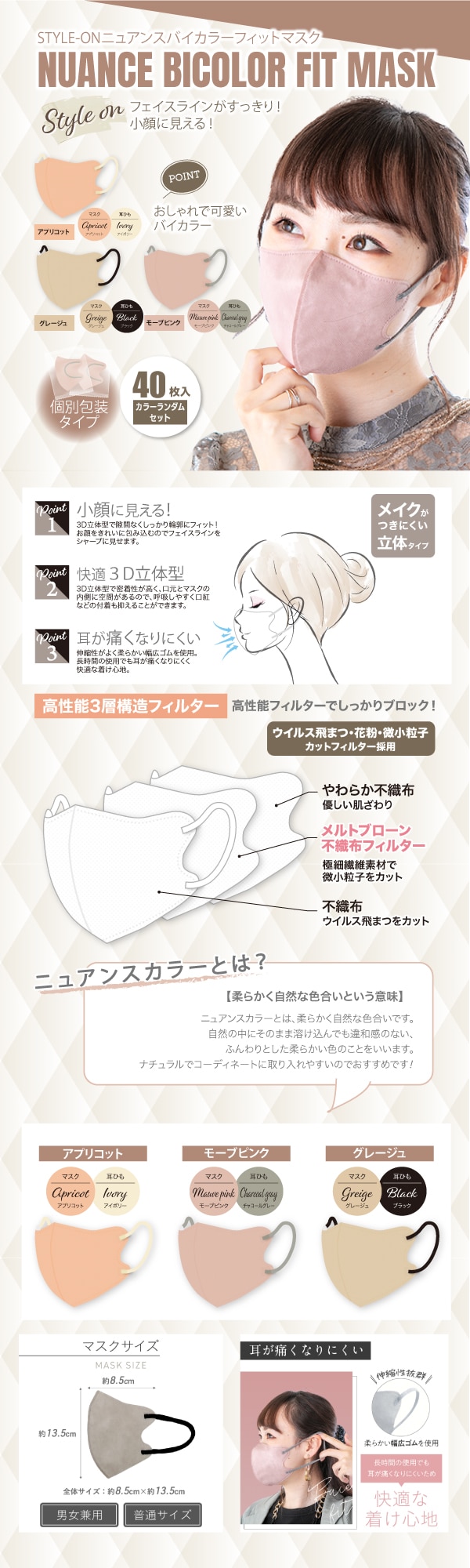 - STYLE-ONニュアンスバイカラーフィットマスク×40枚入り