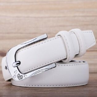 - 【シルバーバックル×ホワイト】ベルト レディース 大きいサイズ 細ベルト レザー