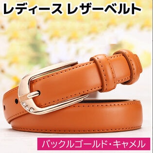 - 【ゴールドバックル×キャメル】ベルト レディース 大きいサイズ 細ベルト レザー