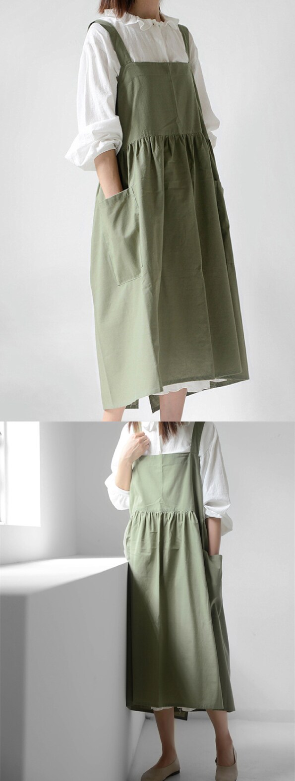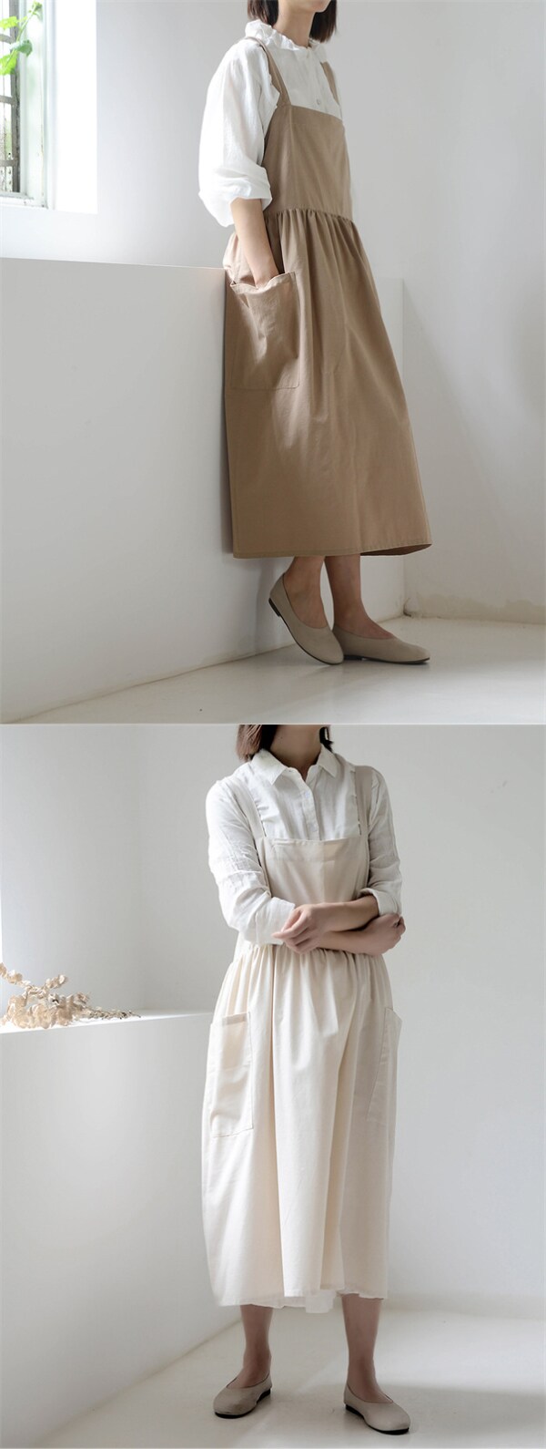 - 【ベージュ】北欧風カフェエプロン【撥水タイプ】おしゃれ ワークにも最適