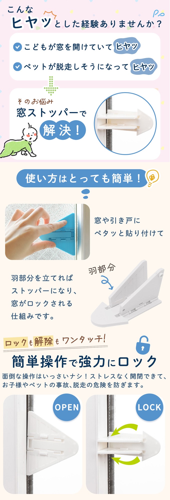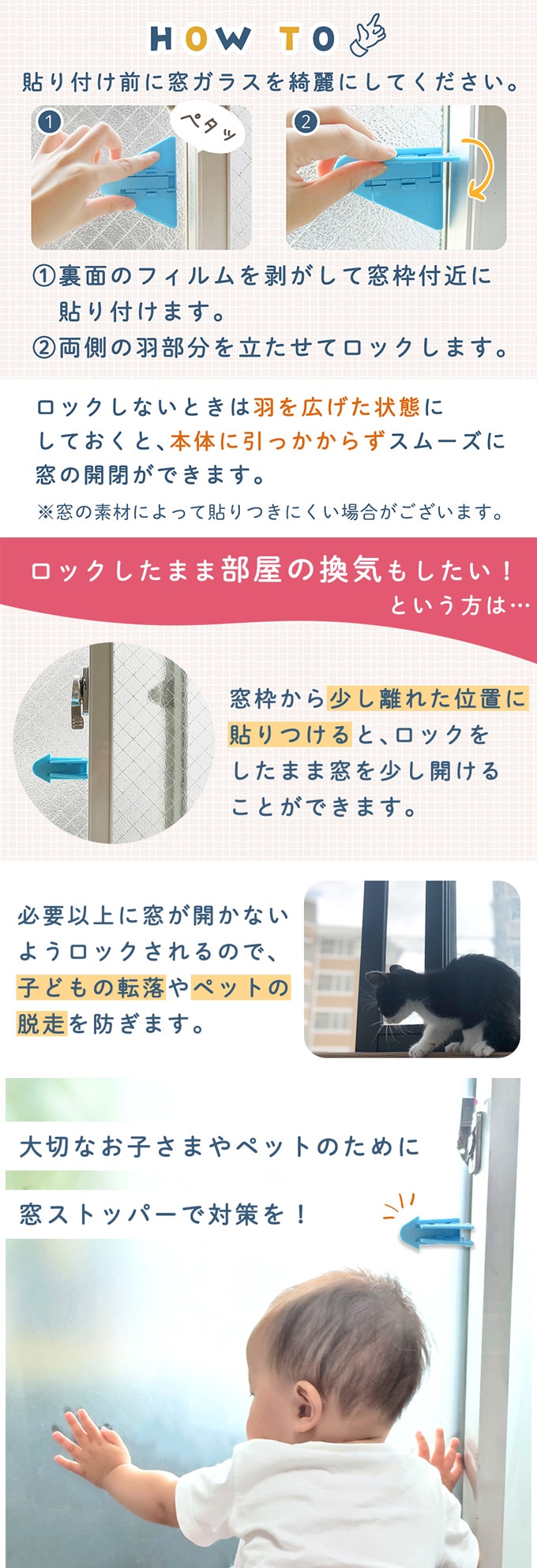 ・窓を少しだけ開けたい時のストッパーとして