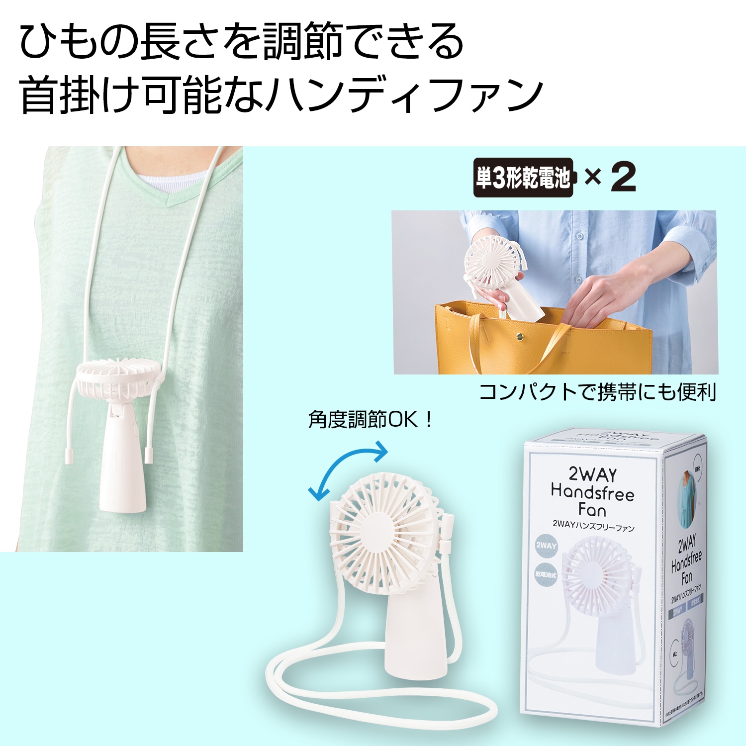- 2WAYハンズフリーファン (乾電池式)