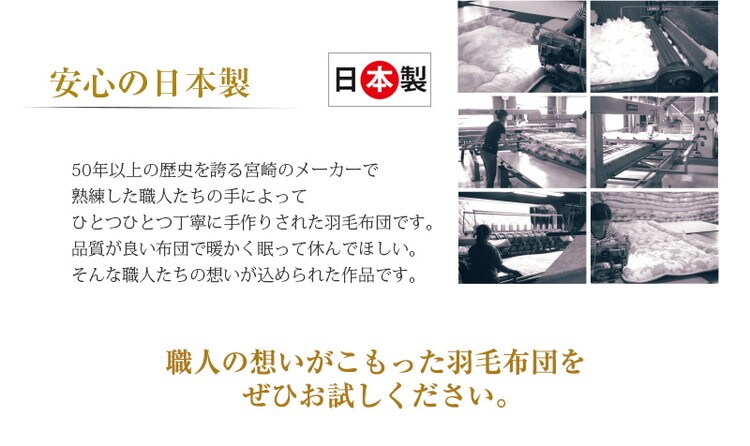 - 羽毛布団 シングル ダウン93% 増量1.2kg パイピン仕上げ・超やわ生地 防ダニ