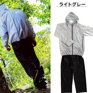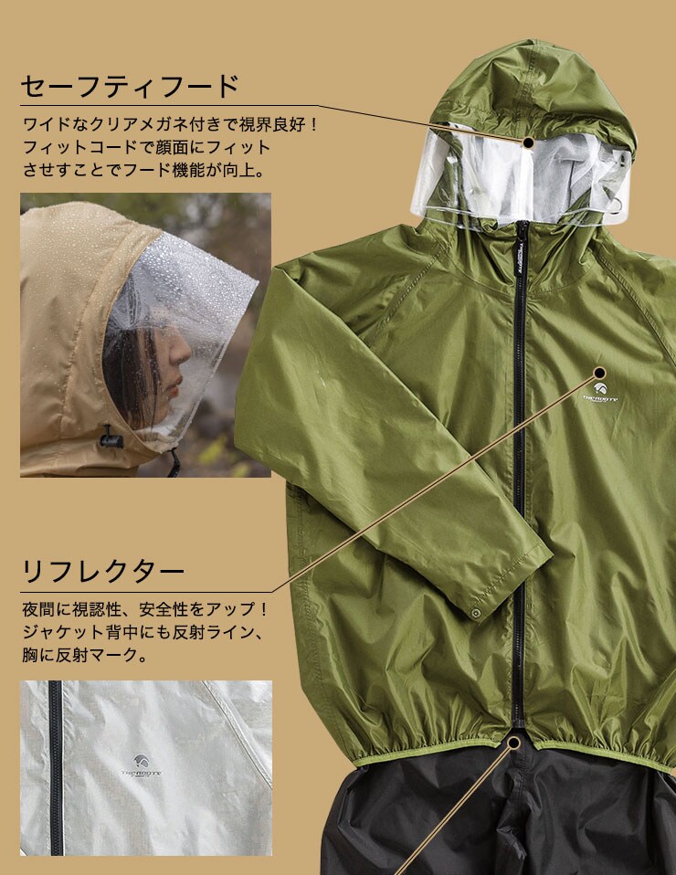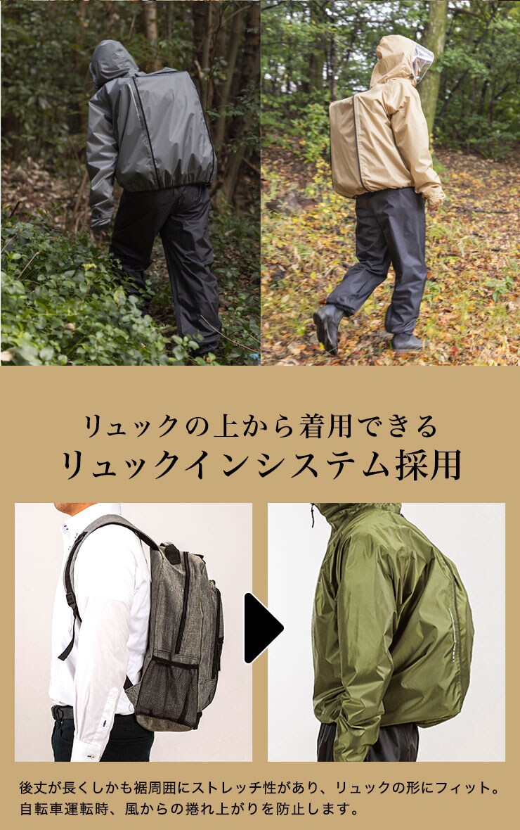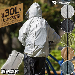 【3L/ライトグレー】THE ROOTS レインスーツ リュック対応 上下セット | リュックを背負ったまま着れるレインスーツ!上下セットで収納袋も付いてます!