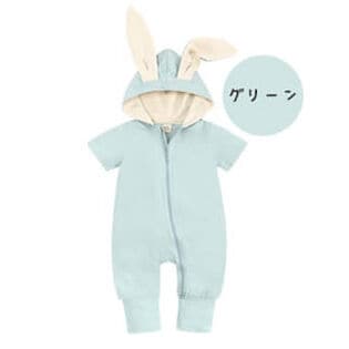 - 【グリーン・73】ロンパース うさぎ ベビー 赤ちゃん 半袖 オーバーオール ウサギ