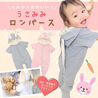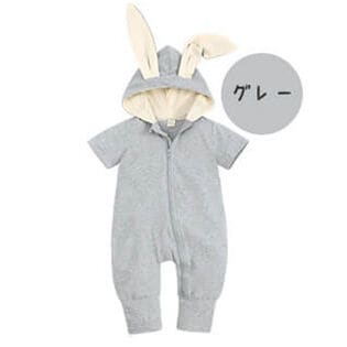 - 【グレー・80】ロンパース うさぎ ベビー 赤ちゃん 半袖 オーバーオール ウサギ