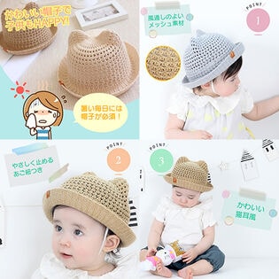 耳のようにもりあがったトップのデザインがキュートなポイント。熱中症対策に。男女どちらでも使えます。人気のパステルカラーをご用意しました。