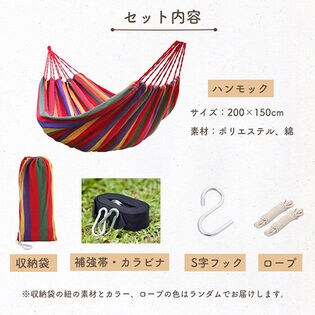 - 【レッドストライプ】ハンモック 二人用 カラビナフック 補強帯 200×150cm アウトドア