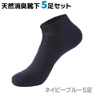 - 【25-26.5cm・ネイビーブルー】靴下 5足セット メンズ 天然 消臭 くつ下